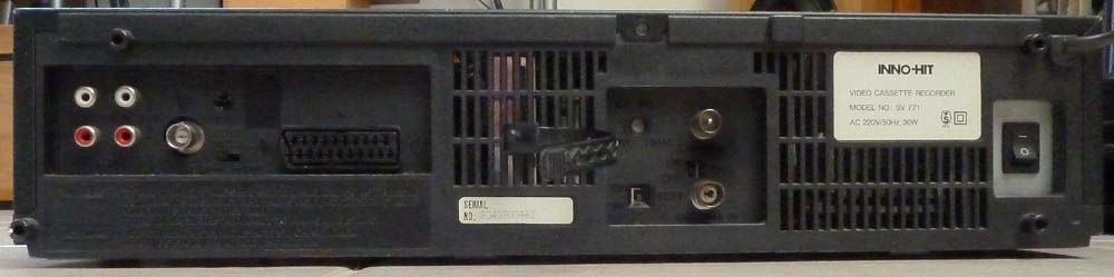 Als Erstes ein 'Inno-Hit' von 1991, ein No-Name-Gerät. Es funktioniert noch immer einwandfrei, vor vielen Jahren musste ich mal einen neuen Gleichrichter spendieren. Das Gerät hat neben dem 'Normalton' (nur Mono) noch den sogennanten 'Hifi-Ton'. Dieser wurde auf einem FM-Träger zusammen mit dem Videosignal (aber mit separaten Köpfen) ebenfalls auf Schrägspuren aufgezeichnet. Er hatte eine effektive Dynamik von über 80dB und brauchte daher keine Tricks wie Dolby. Als weitere Features hat er VPS (Erkennung des Programm-Anfangs und -Endes, damit die gewünschte Sendung unabhängig von der tatsächlichen Sendezeit vollständig aufgezeichnet wird) und für eine komfortable Programmierung die Anzeige auf dem Fernsehschirm ('on Screen Display').
