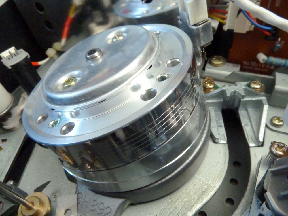 Der Videokopf: Er hat 4 Köpfe, 2 für das Videosignal und 2 für den Hifi-Ton: