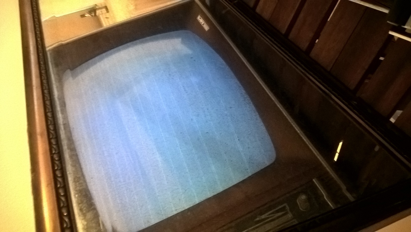 Heute habe ich mich wieder an den 708t gewagt mit den Unterlagen von Debo. Allerdings ist ein neuer Fehler aufgetreten als ich den Farbbalken Generator angeschlossen habe und den VHF Kanal eingestellt hatte, erschien das angehängte Bild. Dabei ist es geblieben, Helligkeits- und Kontrastregler reagieren nicht mehr, auch die Grundhelligkeit im Chassis lässt sich nicht mehr einstellen. Die drei Grundfarben Regler hinten am Chassis lassen sich einstellen. Der Fernsehton kommt beim DVB-T Empfänger auf den richtigen Kanal. In der Fehlerbeschreibung steht, das man den Fehler wie beim S/W Gerät suchen soll, leider nicht mehr.