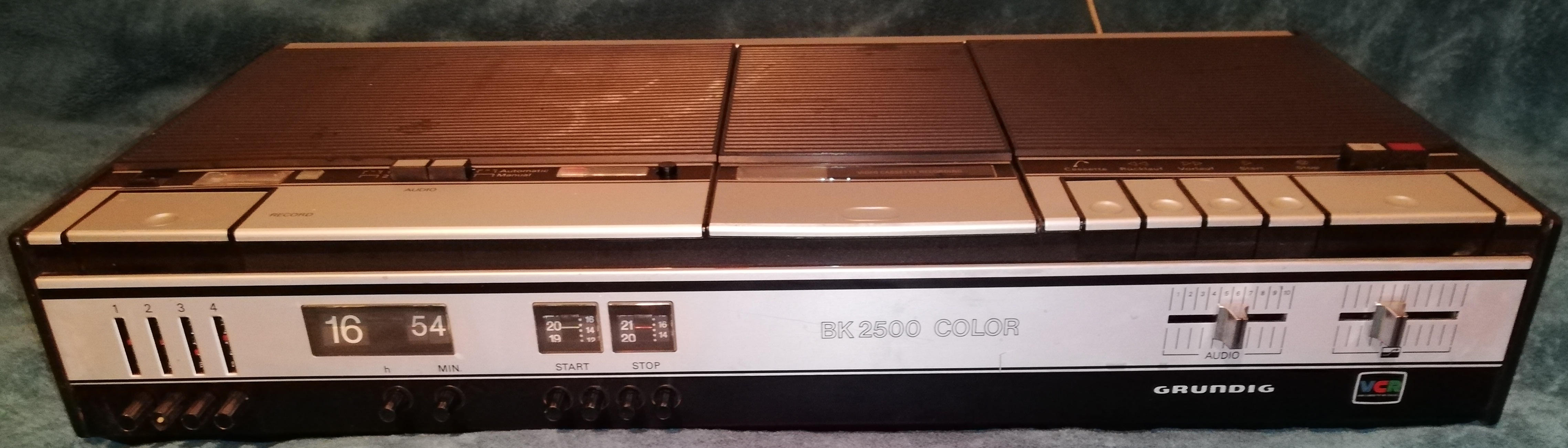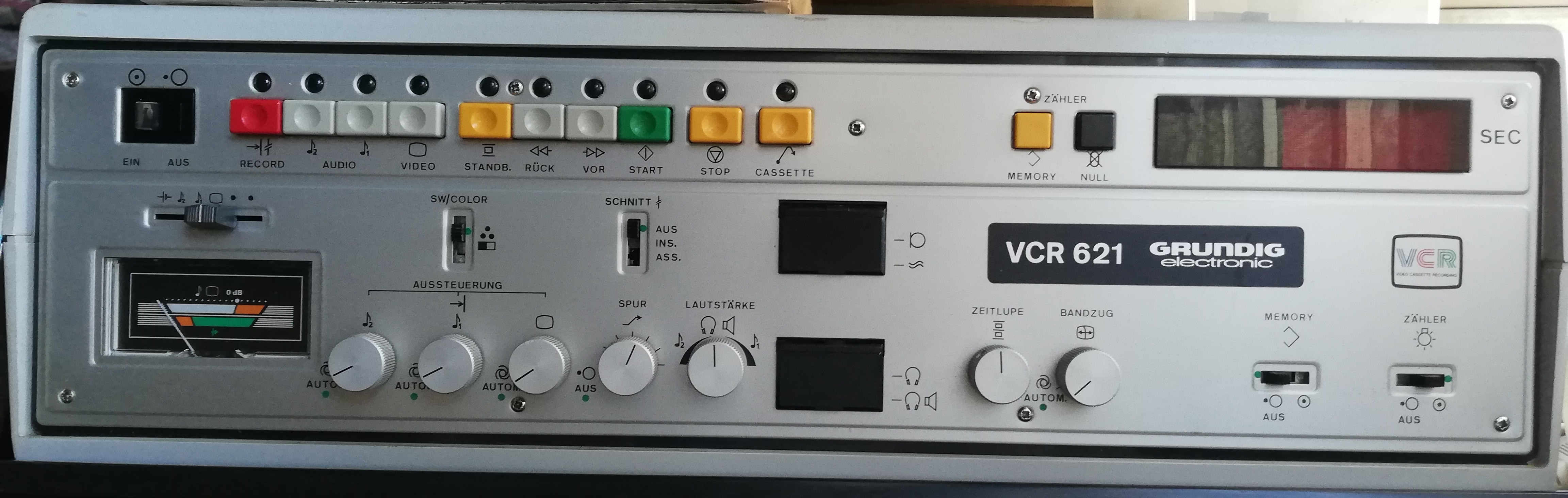 Hier habe ich jetzt Fotos von einem Grundig VCR621 gemacht. Das war neben dem VCR601 der einzige mobile VCR-Recorder, der auch mit einen Akku oder Netzteil betrieben werden konnte, dazu noch mit Echtzeitzählwerk über die CTL-Spur und 2 unabhängige Tonspuren.