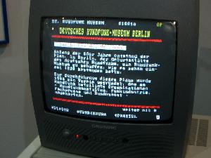 das waren noch Zeiten. Ich habe damals mit einigen "Kumpels", die schon die ersten taiwanesischen Apple Raubkopien "testeten", mit Btx gespielt. Die kamen mal an, hatten ein Basic-Programm geschrieben, das natürlich nicht lief. Bildaufbau zu langsam. Ich hatte für mich schon soweit alles fertig, hochauflösende Grafik, ein Programmteil in Maschinensprache. Das bei denen als Unterprogramm eingefügt und es schnurrte. Seitennummer eingeben und schon kamen die Zeichen der ersten Zeile... Aus dieser Technik ist dann das Btx-Programm fürs DRM entstanden. Ein bisserl V24 Wandlung vorneweg und schon konnte man die Museumsseiten betrachten... Klingt alles sehr einfach, aber-- Es hat wahnsinnig Spaß gemacht, die 138 Museumsseiten habe ich noch hier auf ner Diskette (Apple-format). Kann sie mir auf einem funktionierenden Apple IIc noch heute angucken. Jaja, Internet ist schöner, bessere Grafik etc. Aber die Btx-Käsekästchenseiten sind ja auch viel älter und geben einen ganz anderen Stand der Technik wieder.