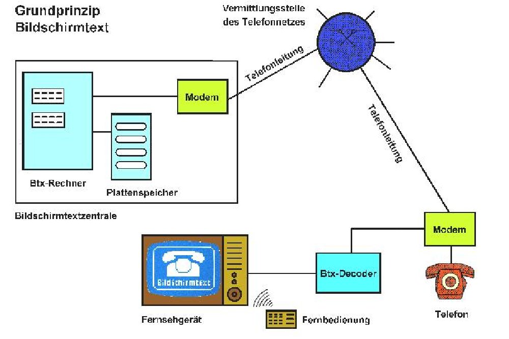 der Vollständigkeit halber sei noch erwähnt, dass es in Frankreich von 1982 bis 2012(!) das System "Minitel" gab, das ähnliche Eigenschaften wie Btx hatte, aber mit Terminals mit eingebautem Bildschirm arbeitete und, was die Nutzerzahl anging, ausserordentlich erfolgreich war.