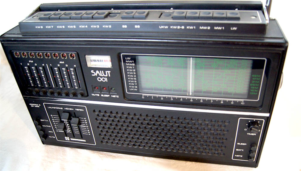 ein richtiger Weltempfänger aus dem Osten. Der "Salut 001", ein Kooperationsprodukt der SU und DDR. Festsenderspeicher und AFC für FM und AM. Als Fremdgänger und Devisenbringer auch im kapitalistischen Ausland eingesetzt.