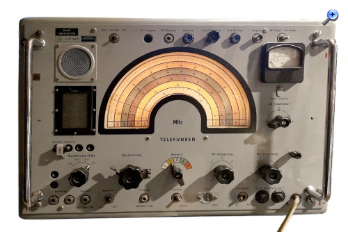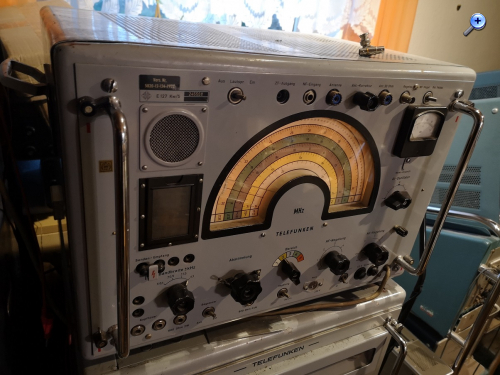 Der kleine Halter ist für Zettel mit Frequenzen die überwacht werden . E127 ist übrigends der schönste unter den großen Telefunken und hat auch heute noch einen Wert. Es gibt ihn auch in Nato-Oliv, als Zubehör gibts auch ein ziemlich häßliches Frontgitter. Telefunken Zusatzgeräte wie zB Seitenbandauswahlgerät usw. können betrieben werden da er dieselbe ZF verwendet wie die großen Brüder, = 525kHz. Diese Radios sind häufig mit den Langlebeversionen der sonst üblichen Röhren bestückt. (ausgenommen die Exportgeräte) so findet man anstelle der EF85 die auf dem Chassis genannt wird die EF805s, die EL84 ist ersetzt durch eine CV Type, ECH81 hat kein SQ Equivalent.
