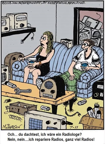 (Grafik von ChatGPT mit dem Prompt "Erstelle ein lustiges Bild zur Gratulation des 30-jährigen Bestehens eines Forums über alte Rundfunktechnik und der Restaurierung und Reparatur insbesondere alter Röhrenradios." erzeugt.)