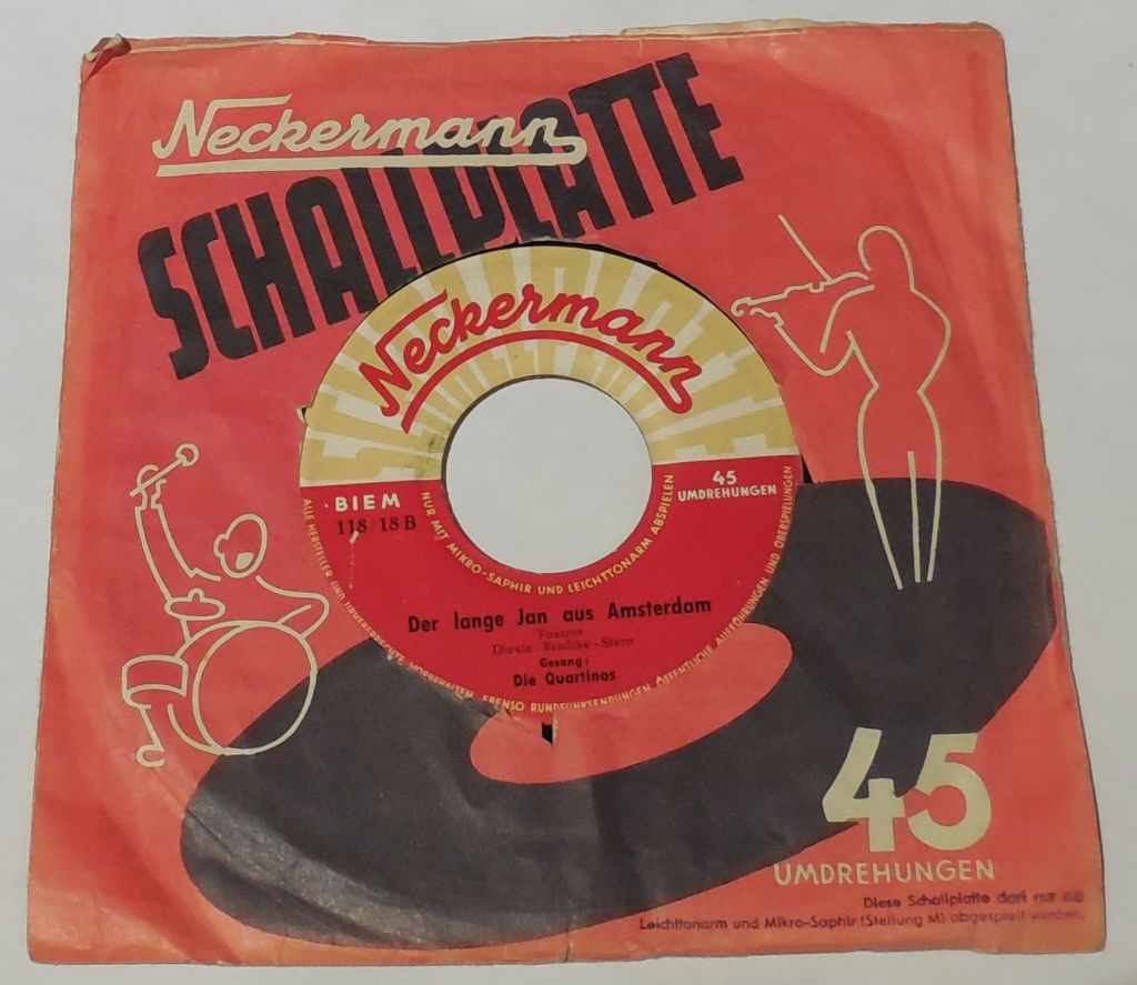 hier sind ein paar Schallplatten in verschiedenen Versionen. Die 'Weisse Platte' ist so eine Muster-Platte, die wahrscheinlich nicht zum Verkauf kam. Die anderen Platten sprechen für sich selbst. Ach ja, von Neckermann gab es nicht nur Geräte, wie man sieht.