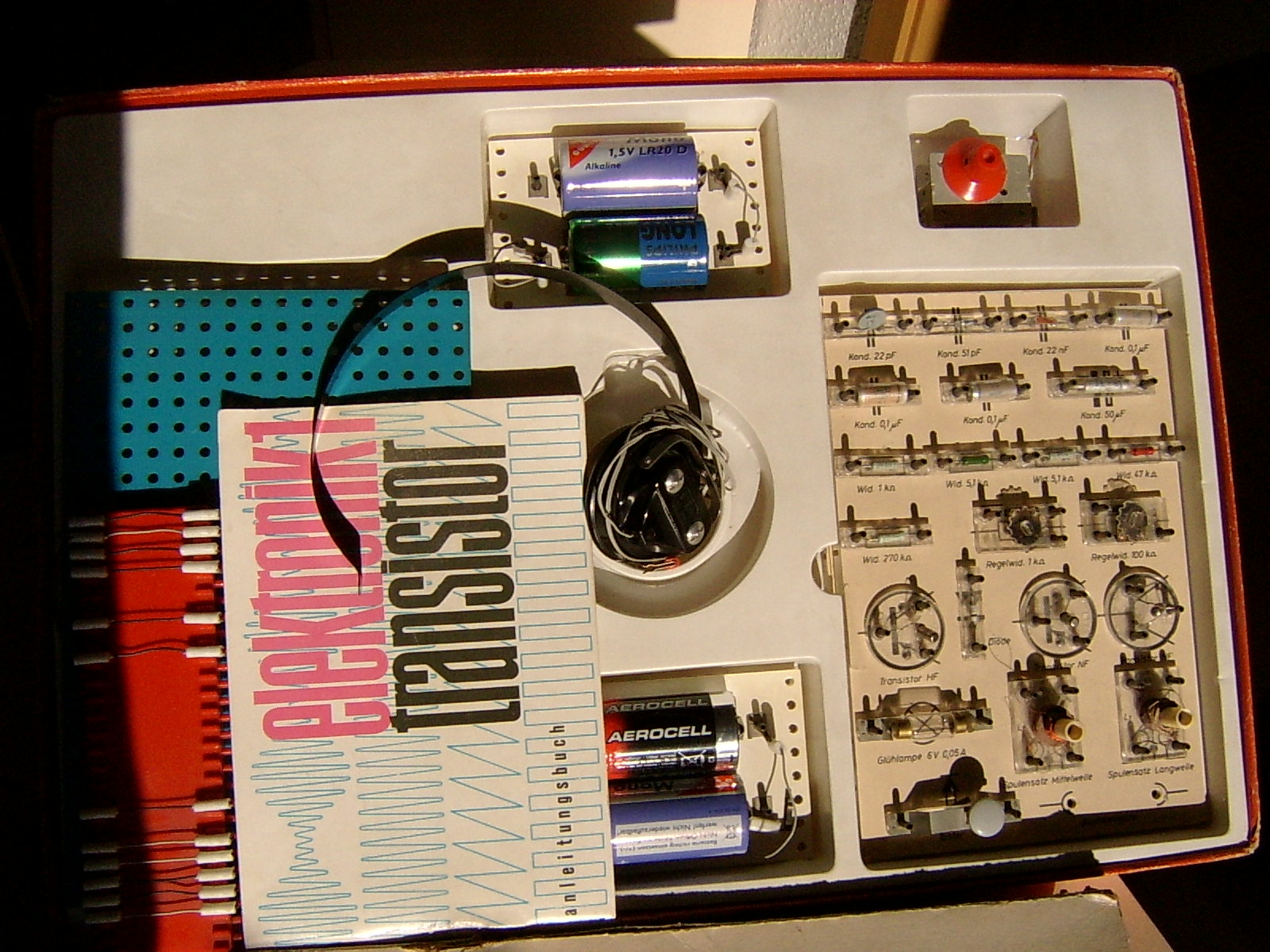 ja genau, das war mein erster Elektronikbaukasten, mit dem ein Radio und sogar ein Langwellensender auf einer in der DDR für diesen Zweck freigegebenen Frequenz gebaut werden kann. Zuvor hatte ich vom gleichen System einen Elektrobaukasten mit Motor, Bimetal (für Blinker), Glühlampe, Summer usw.. Ich glaube aber, mein Baukasten hatte evtl. noch ein anderes Bild auf dem Kasten, war halt ein frühes Modell von der Messe (vermutlich EXPOVITA - als Teil der Leipziger Messe) - ich glaube aus dem Jahr 1969.