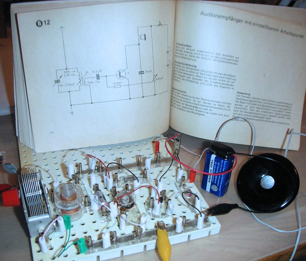 Hallo Baukastenfreunde! Danke für die guten Hinweise! Wer die Wahl hat,... Ich habe die verfügbaren Anleitungen von Lectron, Polytronic studiert. Mein Favorit ist der Polytronic ABC für den Heimgebrauch (Ingo). Der Grund ist zweierlei: Ersten sind die Bauteile sichtbar und die Verdrahtung geschieht auch mit "Draht" und Klemmkontakten, so dass die Verbindungen alle zugänglich bleiben und ein Messgerät, Prüfspitze etc. überall rankommt. Zweitens die hervorragenden Beschreibungen und Systematik dahinter. Am Rande fand ich noch einen wichtigen Hinweis:"Das Ministerium für Post und Fernmeldewesen hat die Festfrequenz 135 kHz für diesen Baukasten freigegeben....Eltern haften für ihre Kinder".