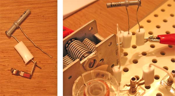 Die nicht im Kasten vorgesehenen Antennenkopplung habe ich mit den Klemmfüßen sehr einfach realisieren können. Das gibt stabilen Kontakt.