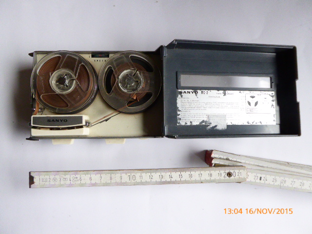 Eine Besonderheit sollte noch erwähnt werden: M.W. verfügt das Gerät über keine Capstanwelle, sondern der Bandantrieb wird durch die Aufwickel-Spule (8,5cm ?)bewirkt. Deshalb liegt auch keine gleichmäßige Bandgeschwindigkeit vor, sondern diese ändert sich mit der Größe des Bandwickels (je größer, desto schneller). Ein ähnliches Modell besaß ich einmal, tauschte es aber bald gegen ein solches mit konstanter Bandgeschwinndigkeit, um die Bänder auch auf anderen Geräten zu verwenden.