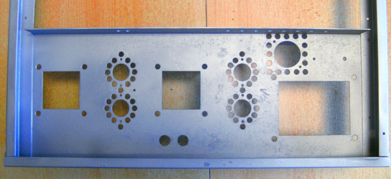 Bevor der Denksport losgeht, also der Neuaufbau der Endstufe mit Anpassung an die vorhandene Vorstufe ein Bild vom fertig entrosteten Chassis. Das ganze mit Zinkspray behandelt. Im Gegensatz zu Friedrich, der ein hervorragender Restaurator istbin ich mehr der Instandsetzer oder Tuner Das Netzteil hat mehr "Bums", also stärkerer Netztrafo, SI Dioden Brücke, mehr als doppelte Siebkapazität. Das wirkt sich auf den Klang aus, aber aufgrund der Zerstörung eines Teils der Endstufe und fehlenden Schaltbildes kann ich das Gerät nicht wieder originalgetreu aufbauen. Leider konnte ich aus den Resten die Schaltung nicht richtig rekonstruieren. Außerdem hätte ich auch bei intakten Gerät eine Änderung vornehmen müssen: Der Netzschalter und die schaltbaren Netz - Zusatzanschlüsse waren schon lebensgefährlich, zumindest nach heutigen Standard. Also wieder Bilder, ich war auch fleißig.