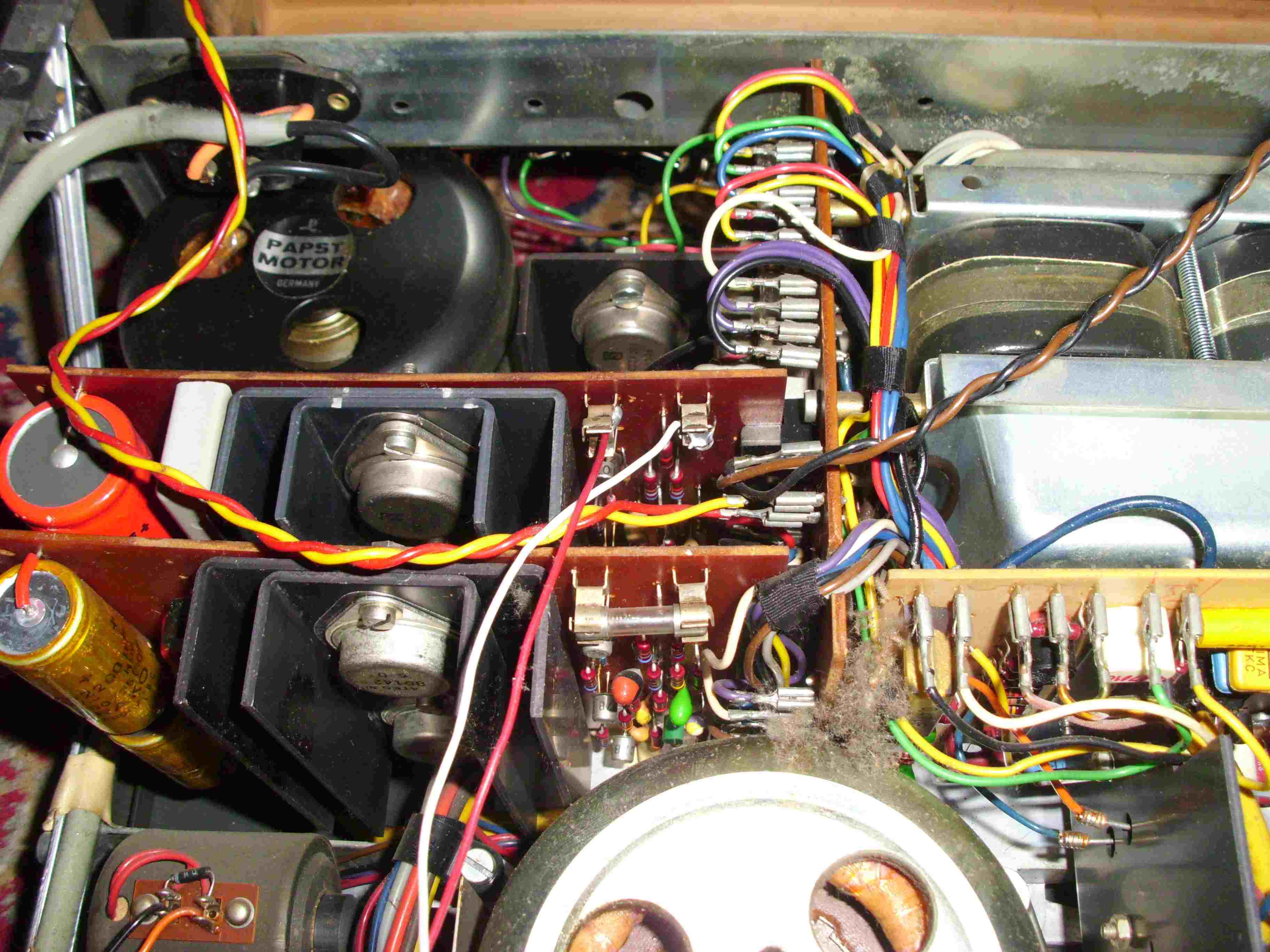 Zum Glück hab ich einiges an Ersatzteilen. Hab ingesammt 7 Revox. Das die im Laufe ihres Lebens etwas kränkeln ist normal. Aber so einen Pfusch hab ich auch noch nicht gesehen. Ich muß die anderen Patienten noch neu mit Kondensatoren bestücken und die Trimmer tauschen. Dann läuft die wieder fast normal. Fast deswegen weil sie dann eingemessen werden muß. Da hab ich mich bisher immer vor gedrückt. Nur machen muß ich es.