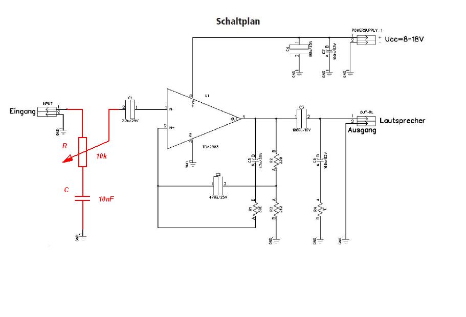 Ich hab ja in meiner elktronischen Naivität geglaubt das Poti müßte irgenwo am Ausgang vor dem Lautsprecher eingefügt werden.