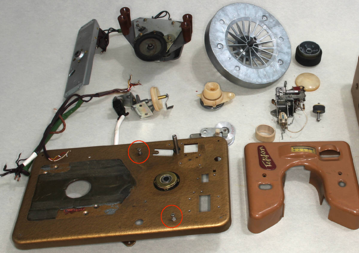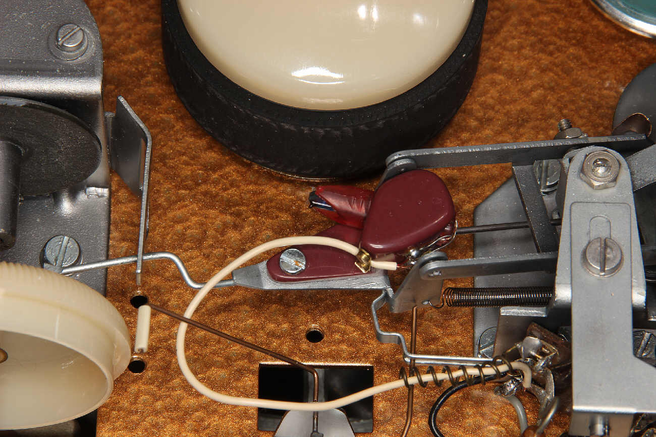 1.) Zu den Schrauben. Ist mir noch gar nicht so aufgefallen, wahrscheinlich weil ich noch nie ein Gerät total zerlegt hatte. Ich habe bei einem meiner Geräte nachgesehen und bemerkt, dass die Schrauben mit einer Mutter gekontert sind und mit grauem Lack gesichert wurden. Das lässt schließen, dass es wichtig zu war die exakte Höhe beizubehalten. Meine Vermutung ist, dass es sich um einen Fixpunkt zum Aufsetzen einer Justage-Einheit handeln könnte. Ich werde mich mal im Buch "Das Tefifon" von Herbert Jüttemann schlau machen. Sicherlich besitzen sie auch dieses Buch. Haben sie dort schon mal nachgeforscht?