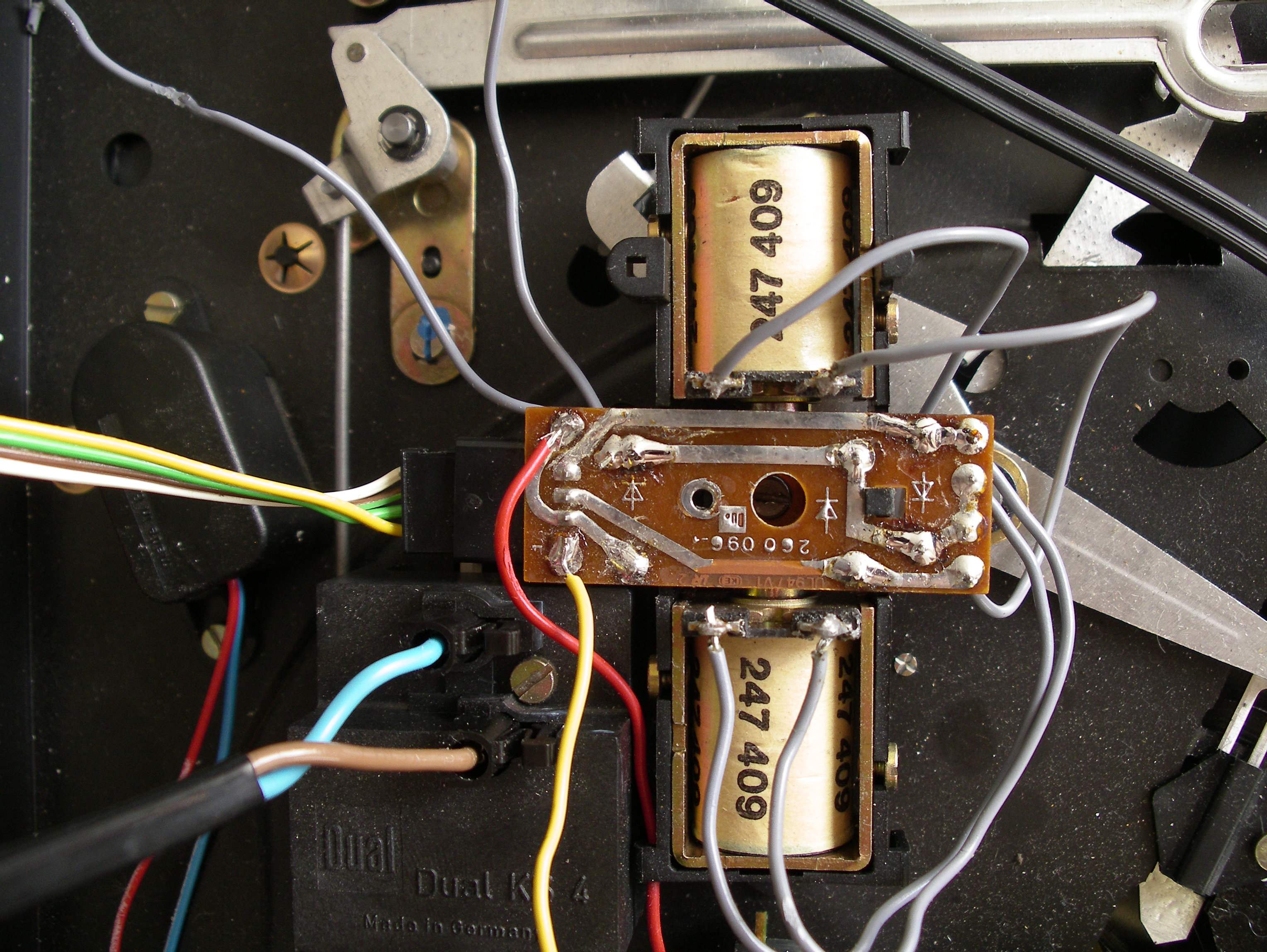 Ich bin dem Rat von Wolle und dem einen Kollegen vom Plattenspielerforum gefolgt und hab einen Widerstand anstelle des Transistors eingelötet. Alles war gut bis zum Betätigen der Lifttaste. Der Widerstand fing sofort an zu rauchen. Ich hab darauf hin die Kabel des Liftmagneten an die Anschlüsse eines anderen gelötet. Beim Betätigen der Lifttaste hätte dieser ja anziehen sollen. Der Widerstand fing wieder an zu rauchen. Danach hab ich nur den Liftmagneten abgelötet und alles andere so wie es sein soll gelassen. Start Stop geht und beim Betätigen der Lifttaste raucht es. Nur wieso. Da hat keiner was dran gemacht. Mir ist das langsam etwas zu hoch.