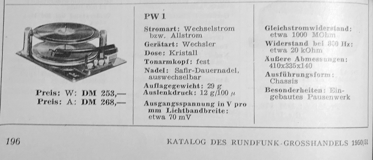Ich habe mal einen Blick in die Großhandelskataloge von 1950/51 und 1951/52 geworfen. Da sind beide Plattenwechsler enthalten, aber keine weiterführenden Angaben zu den Tonabnehmern zu finden.