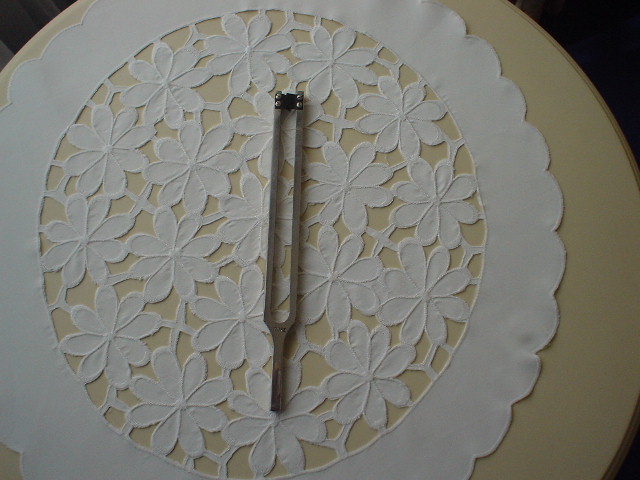 Aber ich wollte es mal ausprobiert haben,die Stimmgabel ist an ihren offenen Enden jeweils mit einem Stahlplättchen versehen,und jeder dieser Plättchen hat dazu noch einen länglichen Schlitz.