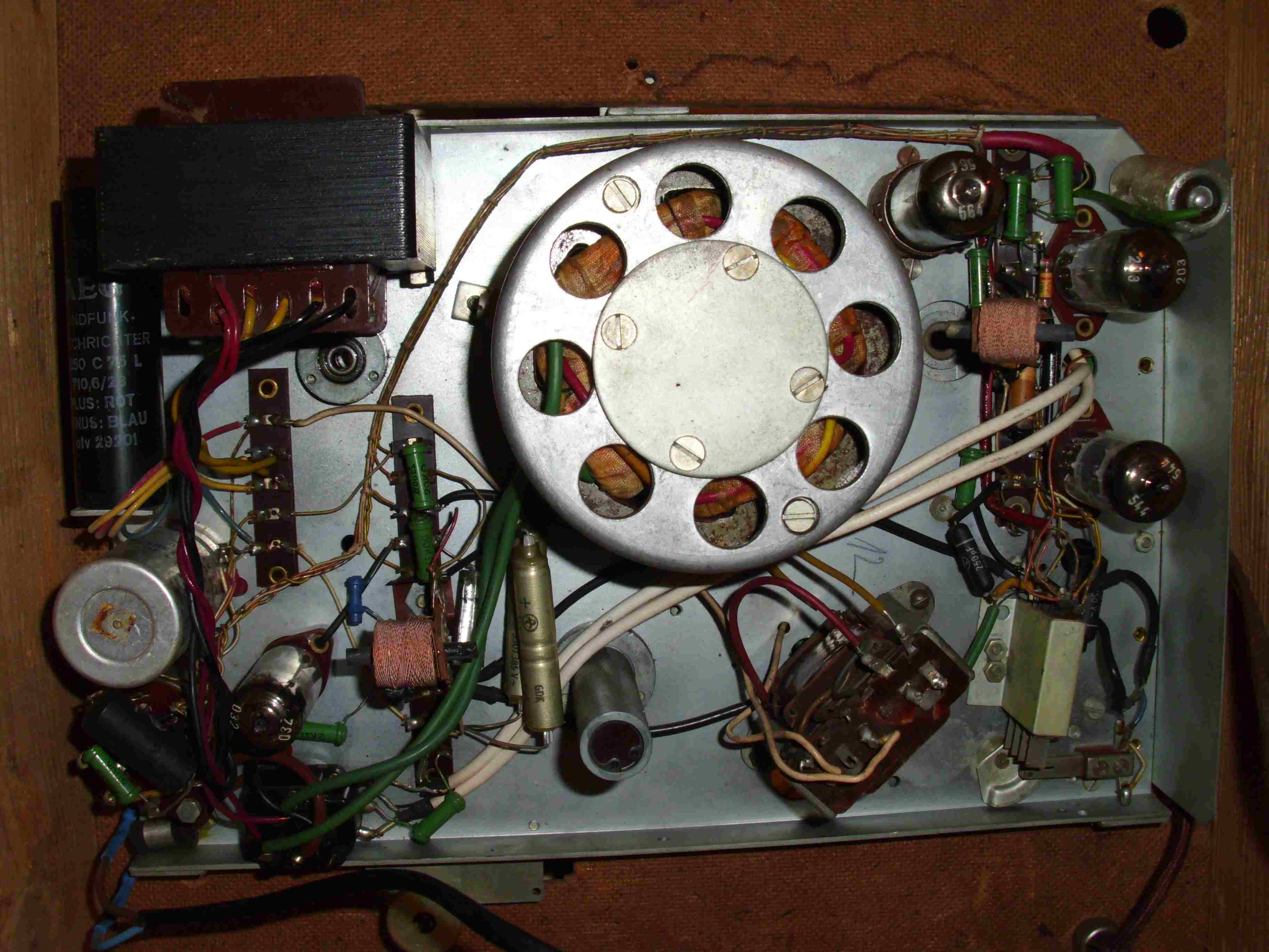 Am Montag hab ich noch ein kleines Tonbandgerät von Saja bekommen. Da es in einer häßlichen selbstgezimmerten Holzkiste steckte ging ich zunächst mal davon aus das es sich um das Modell Standard MC4 handelt. Nachdem ich das Netzkabel in Ordnung gebracht hatte habe ich die kleine eingeschaltet. Der Motor brauchte etwas "Starthilfe" und nach ein paar Sekunden lief alles soweit. Nur der rechte Bandteller ging nicht was aber an einer nach oben gewanderten Laufbuchse lag. Nachdem ich diese wieder in die richtige Position gebracht hatte und alles was sicht drehte und bewegte ein paar Tröpchen bekam lief die kleine wieder. Zwischendurch hab ich mal beim RMG reingesehen und da ist mir aufgefallen das bei meiner kleinen was nicht stimmt. Die MC4 hat als Einbaugerät nur 4 Röhren weil sie ja keinen eigenen Verstärker braucht. Meine hat aber 5. Na ja dachte ich, da ist jemandem der Koffer kaputt gegangen und da hat wer diese Kiste drumm gebaut. Aber mir kam das ganze immer noch merkwürdig vor. Beim vergleichen der Röhrenbestückung kam ich ganz raus. Laut RMG haben alle Saja's als Endröhre eine EL95. Meine hat aber eine EL42 drinn. Laut RMG ist die MC/MK4 1957/58 gebaut worden. Die erste Serie der EL95 kam 1956 raus. Wann ist meine kleine denn gebaut worden wenn ich da die Vorgängerröhre drinn habe? Im Moment bekommt die kleine eine neue Wohnung in Form einer schönen Kiste aus dem Baumarkt. Ich denke mal wenn ich alles richtig drinn habe und die Kiste lackiert ist sieht das ganze (weiß ja keiner) fast so aus als wenn es so gehört.