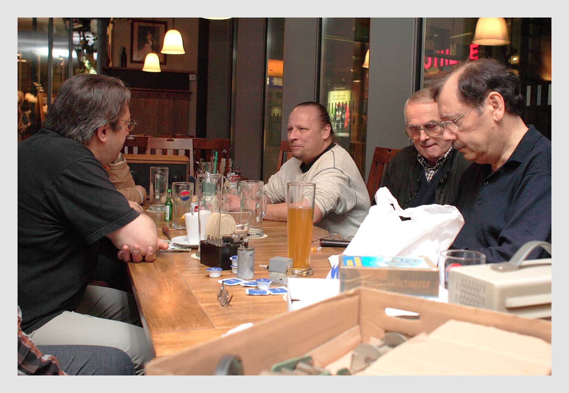 Das Treffen tat richtig gut, war sehr interessant (auch wenn der "Microhet" noch nicht in meiner Tasche landen wollte, aber was nicht ist...), hat nette Kontakte geknüpft und war rundherum sehr gelungen. Rainers Organisation sei Dank und den Teilnehmern, deren Mitbringsel sogar einigen Gästen im Lokal die Augen grösser werden liessen und natürlich für die zahlreichen bereits eingebrachten schönen Bilder. Eine gelungene Veranstaltung, welche mit Vorfreude bei den Teilnehmern auf weitere Treffen endete.