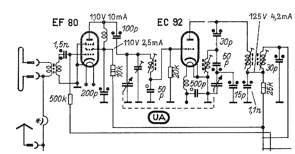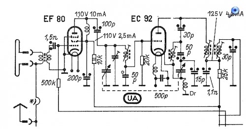Ist sowieso merkwürdig, für die Vorstufe noch eine Penthode EF80 (rauschen) zu nehmen, wenn doch schon eine zweite EC92 bereit stände.