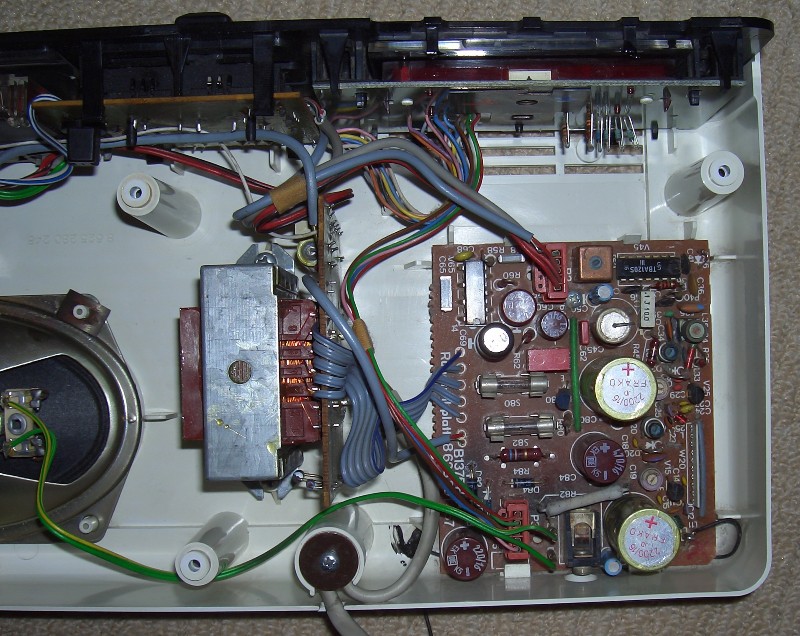 Ich habe heute mal das Display abgemacht und alles gereinigt,also die Taster und die Displayplatine.Da sieht alles normal aus keine Kratzer oder komisch aussehende Stellen,der Fehler kann also nur auf der kleinen Platine sein.Mir kommt das Teil D82 komisch vor....sieht aus wie kaputt,kanns daran liegen ? Wie man sieht is ja in dem Radiowecker nicht viel drin und es funktioniert ja alles (Licht,Radio,Senderwahl usw).