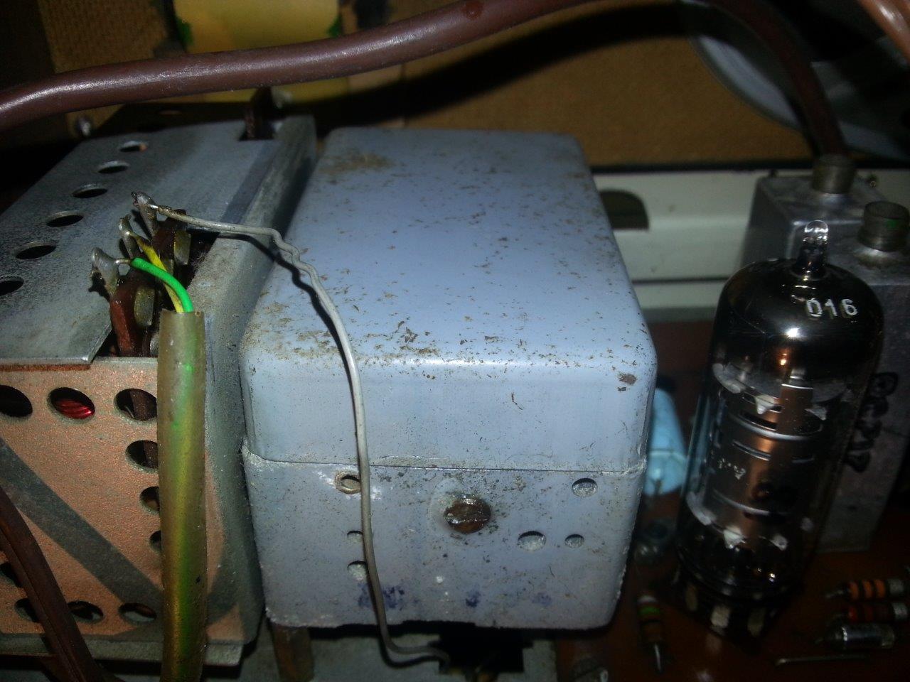 Nun schließe ich auf ein Kontaktproblem am UKW-Drehkondensator. Ich vermute den Drehkondensator in dieser rechten grauen Blechkiste (siehe Fotos)? Kann das wer bestätigen? Wie bekomme ich das Kastl auf?