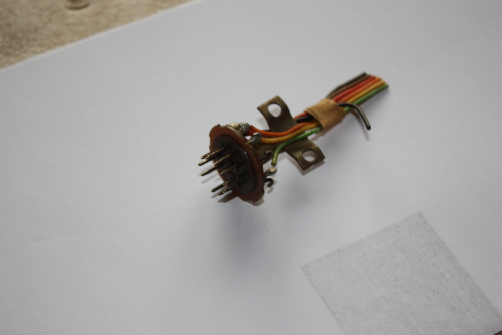 Eine Variante zur Herstellung eines Dekal Steckers wäre eine Dekal Print Fassung. Mit geraden Stiften auf der Lötseite (unten). Kontaktstifte, evtl mit Lötfahne auf die Oberseite, da wo die Röhre aufgesteckt wird einstecken. Das dann mit 2 K Kleber o.ä. fixieren, auflöten wird nicht gehen schätze ich. In der Bucht suchen: Fassung 10 Pin Sockel Dekal Print.