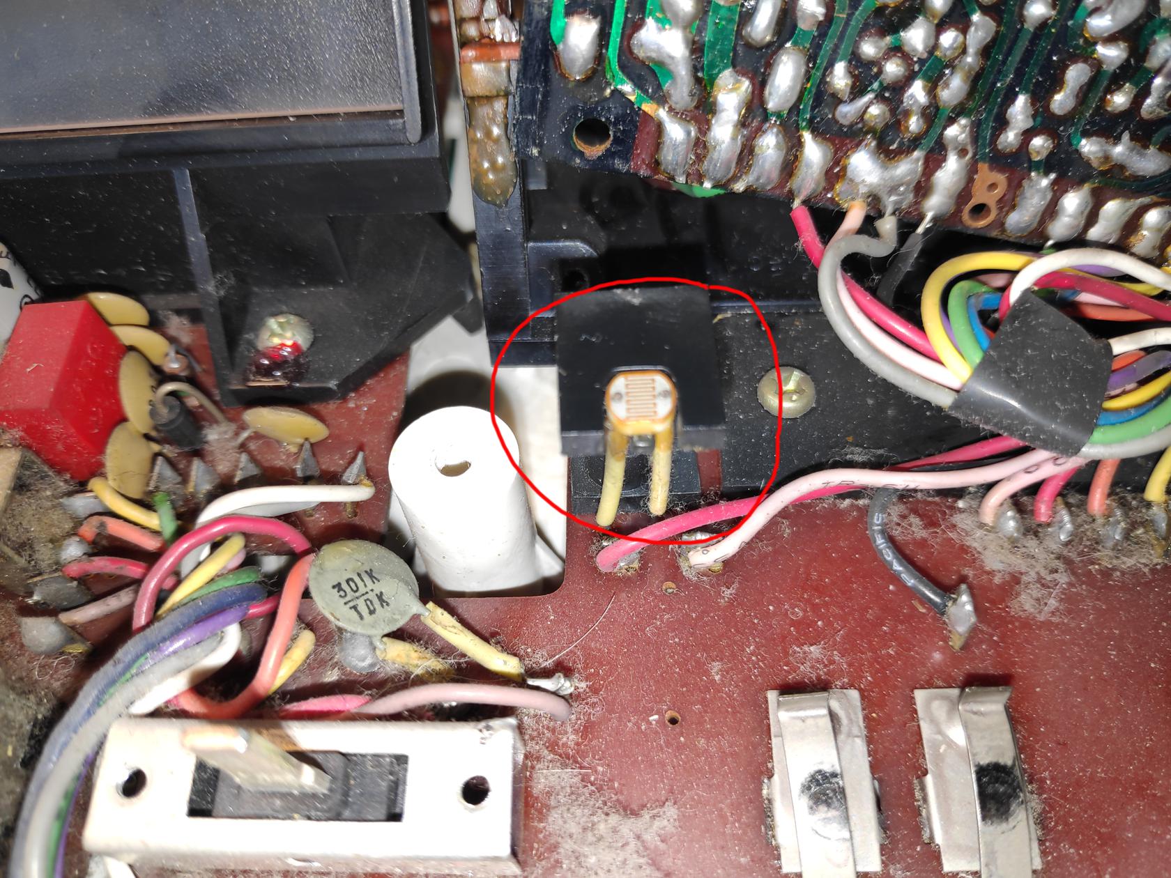eventuell ist irgendwo ein Einstellregler oder Abgleichwiderstand zur Einstellung der Dunkelhelligkeit. Aber Fotowiderstände können auch hochohmiger werden. Schalte doch mal einen 1MOhm Regler parallel und stelle damit deine Helligkeit bei abgedunkeltem Fotowiderstand ein. Wenn mit dieser Einstellung der Regelbereich hell/dunkel noch ausreicht , dann lasse den Regler drin oder ersetze den durch einen Festwiderstand. Ansonsten den Fotowiderstand ersetzen. Mache trotzdem ein Bild- Fotowiderstände haben eigentlich keine Linse.