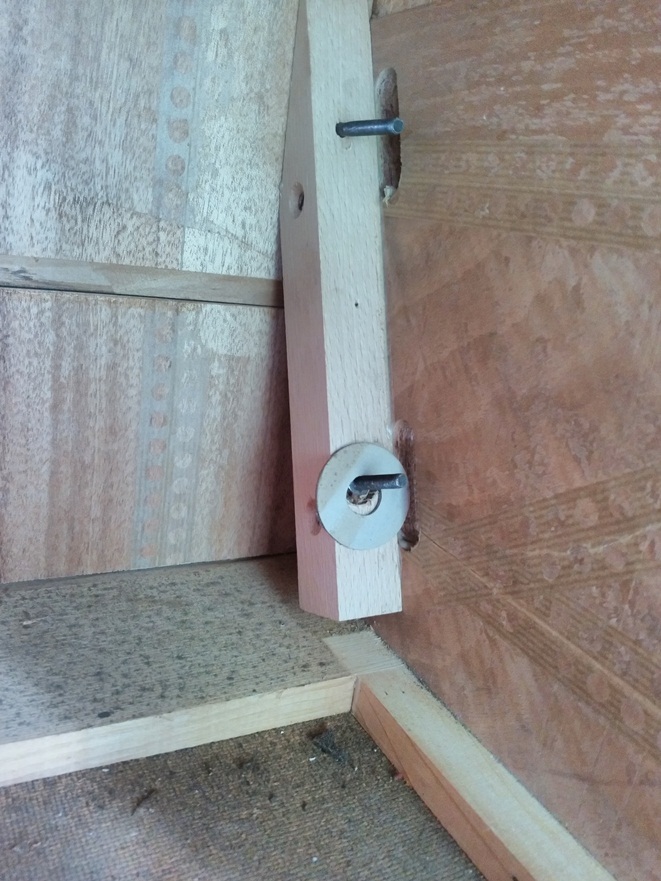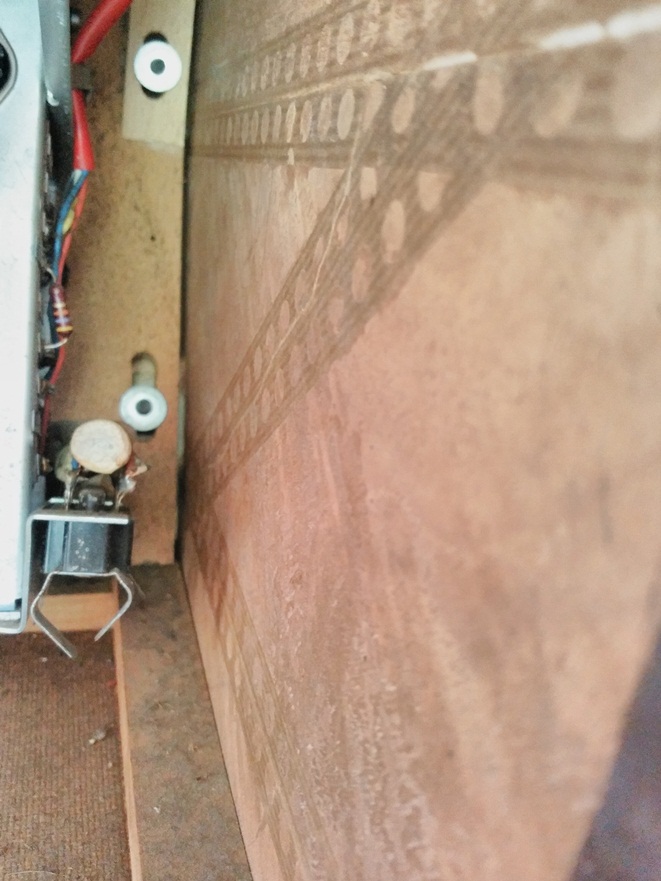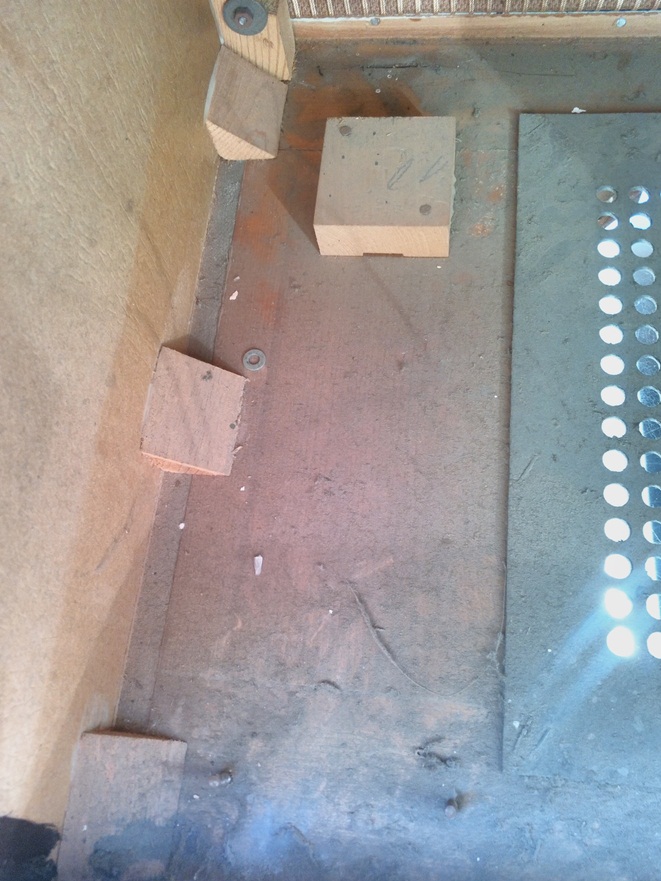Könnte mir jemand sagen, wie man das senkrecht nach unten hängende Chassis der Isabella ausbaut? Rechts und links davon sind Blechwinkel mit Muttern auf Stehbolzen. Die Muttern habe ich entfernt, aber das Chassis lässt sich so nicht nach hinten/unten ziehen. In den Fächern rechts und links daneben sind etwa 8 mm breite Schlitze gefräst, die in den Raum zwischen fester Frontseite der Truhe und Chassisunterseite führen. Was könnte dort sein und wie ist es zum Ausbau zu handhaben.