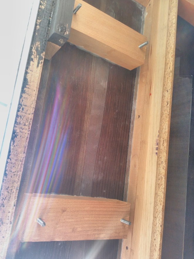 Nordmende hat immer eine Abrutschsicherung verbaut, das heißt selbst wenn alle Muttern gelockert sind, rutscht das Chassis nicht nach unten. im Fall dieser Isabella waren diese jedoch unüblich angenagelt und durch Feuchtigkeit und eine Standzeit von 58 Jahren fest auf die umgebenden Holzbauteile gepresst. Das sind 2 Vierkantleisten 12x12mm rechts und links. Danach wie du sagst aufpassen, das schwere Chassis rutscht ab, zumal ich im Kofferraum ja wegen der 2. Truhe keinen Platz vor der Öffnung habe.