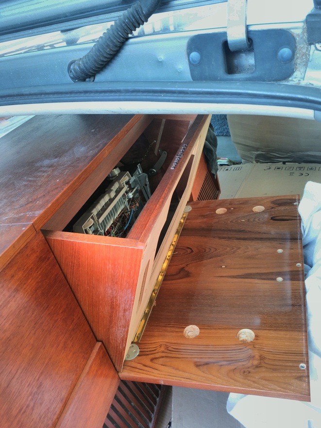 ich habe ein ernsthaftes Gewichtsproblem. Wenn ich Radiotruhen hole, baue ich vor dem Einladen, und sei es auf der Bordsteinkante, möglichst alle Technik bis auf die LS aus. Das konnte ich am vergangenen WE nicht und jetzt steht eine Loewe-Opta Patricia Luxus stereo 42234 neben einer Nordmende Isabella mit Chassis 2/633 in meinem Kofferraum. Jetzt habe ich einen Musiklaster. Wegen des Gewichts bekomme ich die Truhen so nicht mehr heraus.