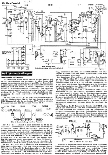da habe ich wohl ein wenig geschlafen: Ich bin vom VEB Stern Rochlitz Paganini ausgegangen. Sorry. Es ist also ein Nora Paganini. Da liegt mir das Schaltbild nicht vor. Einb Blick auf Dein Schaltbild zeigt aber auf: Hier ist der NF-Ausgangstrafo mit seiner Primäranzapfung Teil der Netzsiebung (auch eine Art Siebdrossel, in Verbindung mit der Schirmgitterschaltung der NF-Röhre EL41). Ich kann auf dem Schaltbild nicht erkennen, ob da eine Kathodenspannung bei der EL41 angegeben ist. Die sollte aber so um 7 Volt liegen.