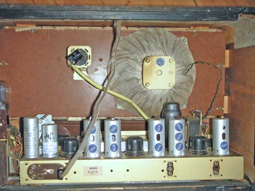 Mit dem Zufalls-Schnappschuss beende ich erstmal meinen Reparaturbericht. Viele Bauteile (Widerstände, Kondensatoren) hatten zwar nicht mehr ihre Toleranz. Wenn es nicht unbedingt erforderlich war habe ich sie nicht ersetzt. Das Gerät ist also fast noch unverändert wie 1950 und spielt und spielt, zumindest solange es analoge Sender gibt.
