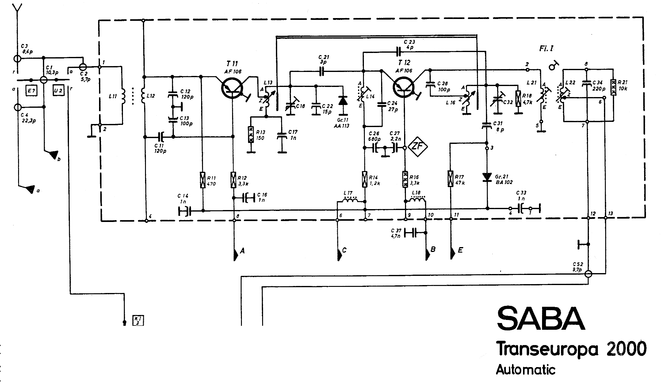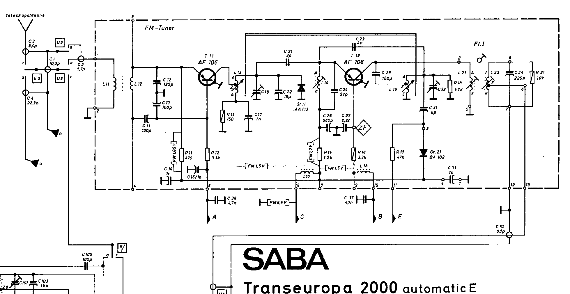 Hallo Günther, dein Transeuropa wird im UKW-Bereich 2 fach induktiv abgestimmt, d.h. dabei wird beim Abstimmvorgang je ein Kern durch die Spulenkörper des Zwischen,- und Oszillatorkreises mittels einer Schnur gezogen. Vergleiche bitte beim Senderabstimmen von 87 - 104 MHz an einem baugleichem UKW Tuner, den Weg (in Zentimetern) der durchziehenden Kerne durch die Spulen (Zwischen u. Oszillatorkreis) auf gleiche Weglänge. Abgeglichen wird bei Induktiver Abstimmung entgegengesetzt der Kapazitiver Abstimmung im unteren Frequenzbereich mittels C. Trimmer und im oberen Bereich mittels Spulenkern. zuvor bedarf es aber einer Grundstellung der beschriebenen Abstimmkerne.