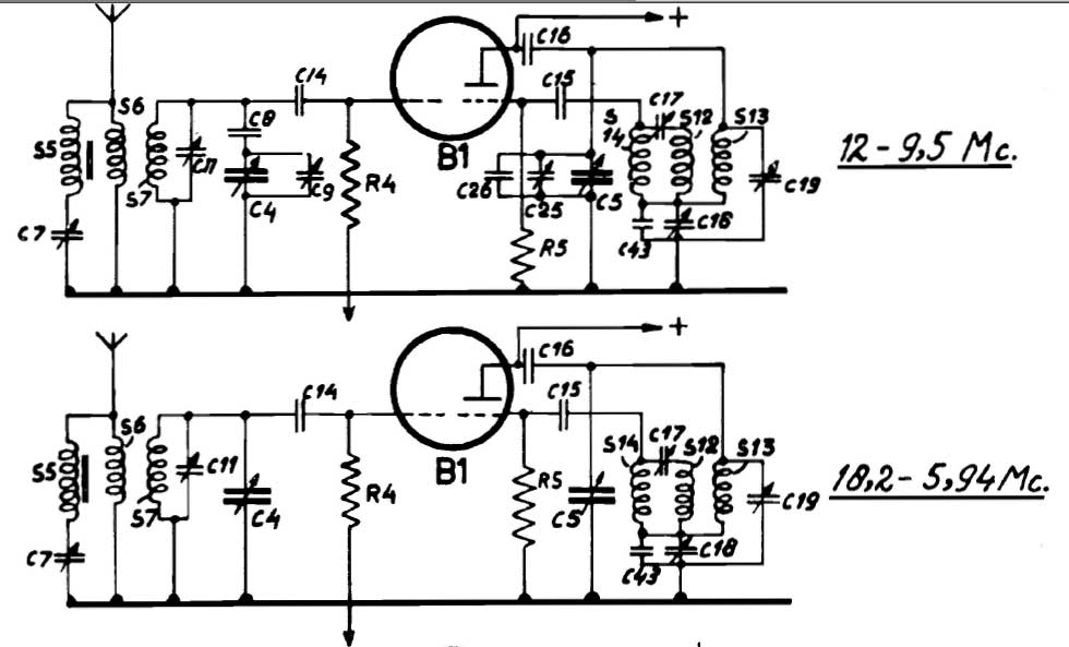 Hier sind die Schaltungen mit den entsprechenden Abstimmelementen: