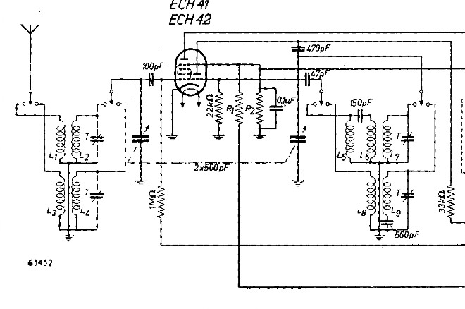 Hallo zusammen, einige spannungslose Messungen an der Eingangs/Mischstufe mit der ECH42 haben mich zuversichtlich gestimmt. Dazu habe ich bei gezogener Röhre Widerstands- und Kapazitätsmessungen und Resonanzmessungen vorgenommen. In den Servicunterlagen gibt es sogar einen Plan für alle R und einige C durchnummeriert für alle Röhrensockelanschlüsse, allerdings für einem spezielles Philips Messgerät und gegen Masse.