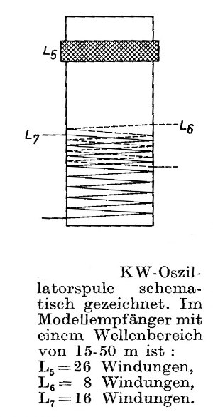 Um die Sache mit der Sonderspule am KW Oszillator mal zu veranschaulichen nochmals eine Philips Schaltung, die als Vorlage für Entwickler von Empfängern dienen soll. Natürlich mit Philips Röhren. Im Schaltplan bilden die Spulen L 6 + L7 den KW Oszillatorkreis und die RK. L 5 ist die Sonderspule. Der KW Osz. Kreis beim BD 390A ist ähnlich gebaut. R 1 und R 2 bilden den Schirmgitterspannungsteiler, dieser fehlt bein BD 390A. Offenbar wollte man den Ouerstrom von ca. 4 mA "sparen".