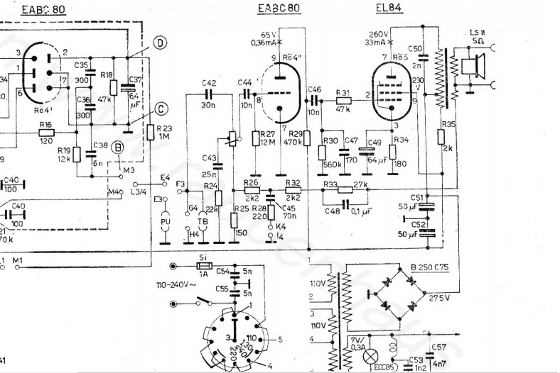 So... Ich hab nun folgende Bauteile gewechselt: Bei der EL84: C49 R31 (hatte 65k statt 47k) R30 (hatte 820k statt 560k) C46