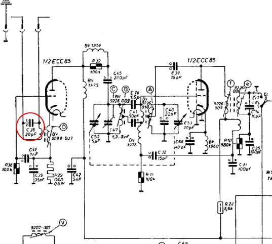 Dieser ist nicht defekt, sondern extrem verschmutzt. Durch die langen Anschlussdrähte lag er direkt am Spulenkörper an. Die Vorderseite war sauber wie auf dem Foto, aber die Rückseite zwischen Spulenkörper und Kondensator hat sich eine klebriche Schicht gebildet. Diese Schicht hat zudem den Kondensator hochohmig werden lassen. Dieser Effekt war auch zeitweilig verschwunden. Dadurch das dieser Kondensator regelrecht an der Spule klebte, war die schwarze Schicht in ihrem gesamten Umfang nicht sichtbar.