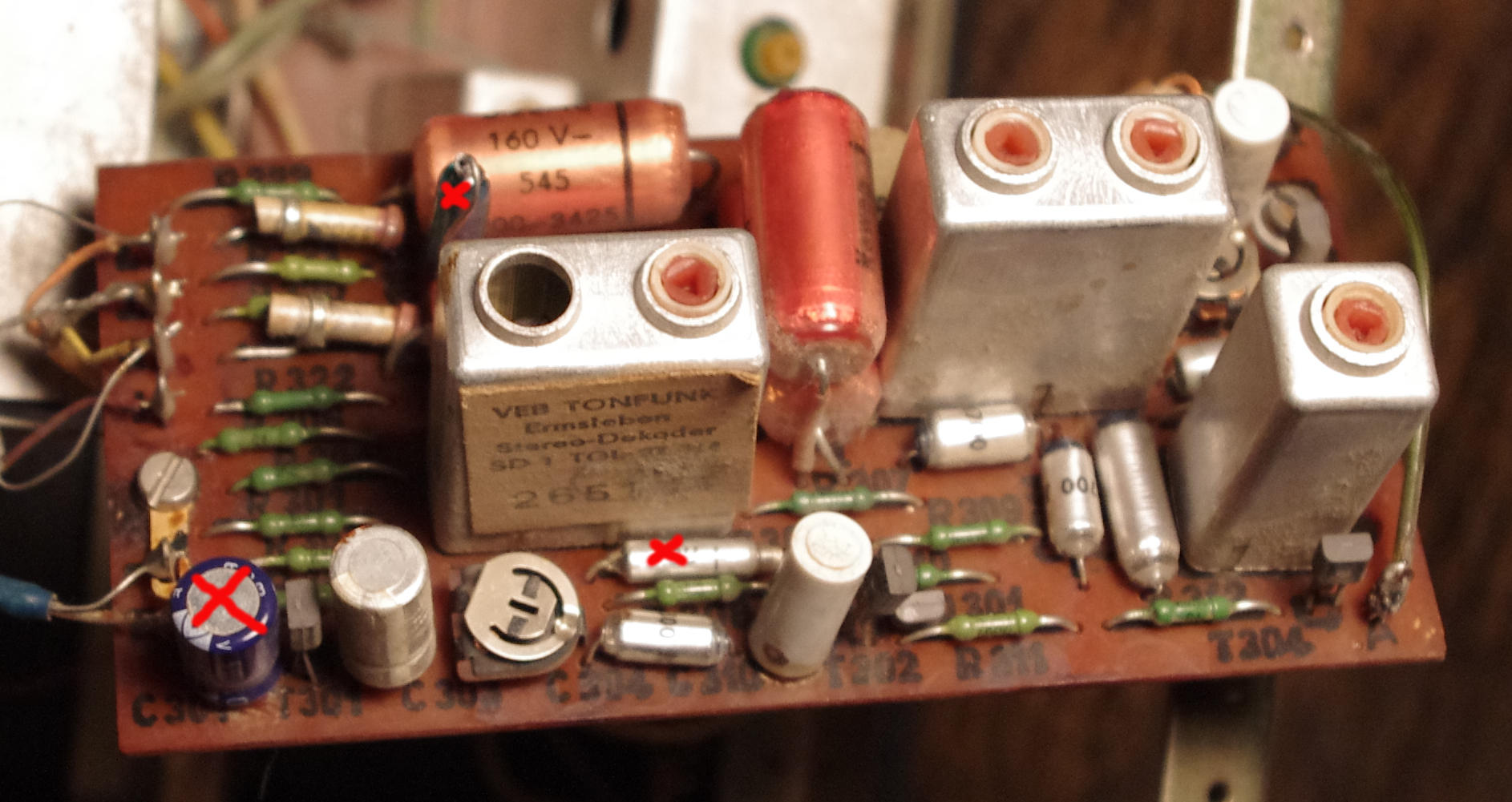 danke für Deine Antwort! Wie bereits erwähnt, habe ich bereits alle "Schneemänner" im gesamten Radio gewechselt. Das Foto oben ist veraltet. Alle restlichen Elkos zu prüfen ist natürlich ein sehr großer Aufwand. Ich hoffte die Suche ein wenig eingrenzen zu können...?