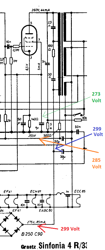 Anodenspannung 275 Volt Schirmgitterspannung 63 Volt