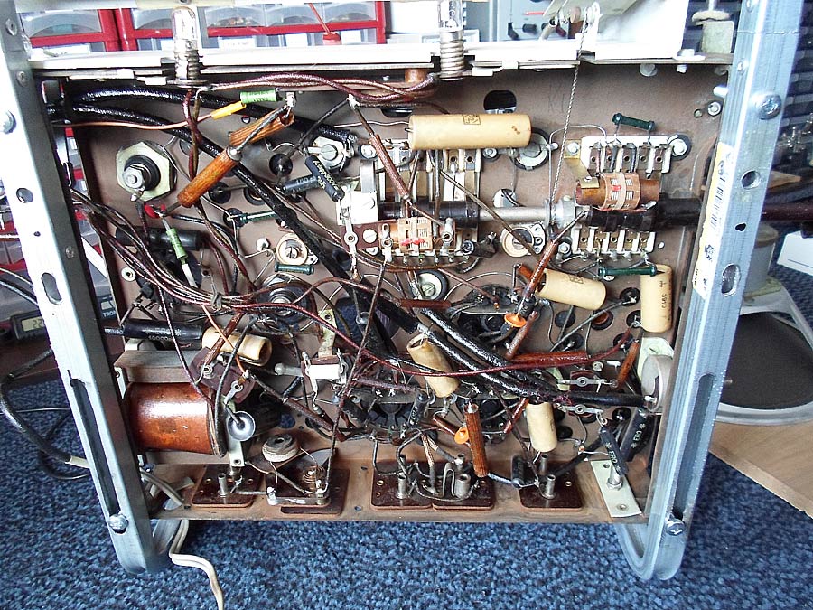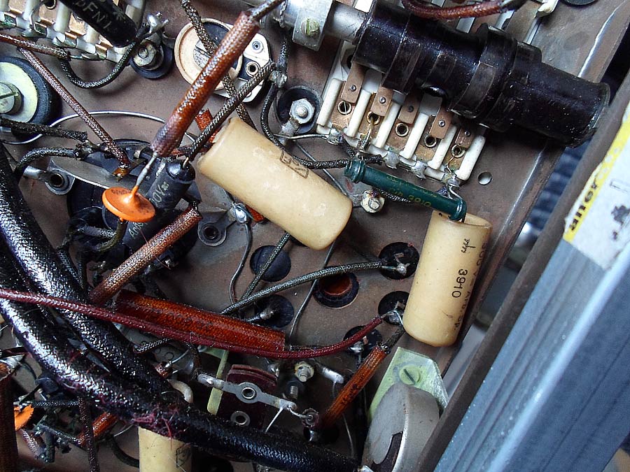 ich habe alle dazugehörige Kondensatoren überprüft. Alle sind OK. Die sind auch fast alle neu. Jemand, noch früher, hat das Radio repariert und hat sehr viele Kondensatoren ausgetauscht, aber in selbstgebastelte Gehäuse. Die Gehäuse sehen nur wie alte aus.