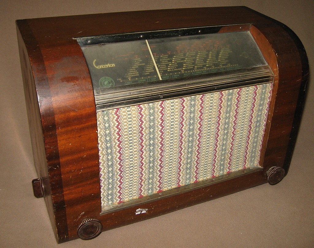 das Radio ist jetzt fertig und ich auch beinahe. Dies Radio stellt für mich die maximierte Serviceunfreundlichkeit dar, weil es so viele schwer zugängliche Schrauben hat. Der Lautsprecherstoff stammt von Stoffresten eines Rockes, der vor etwa 25 Jahren genäht wurde.