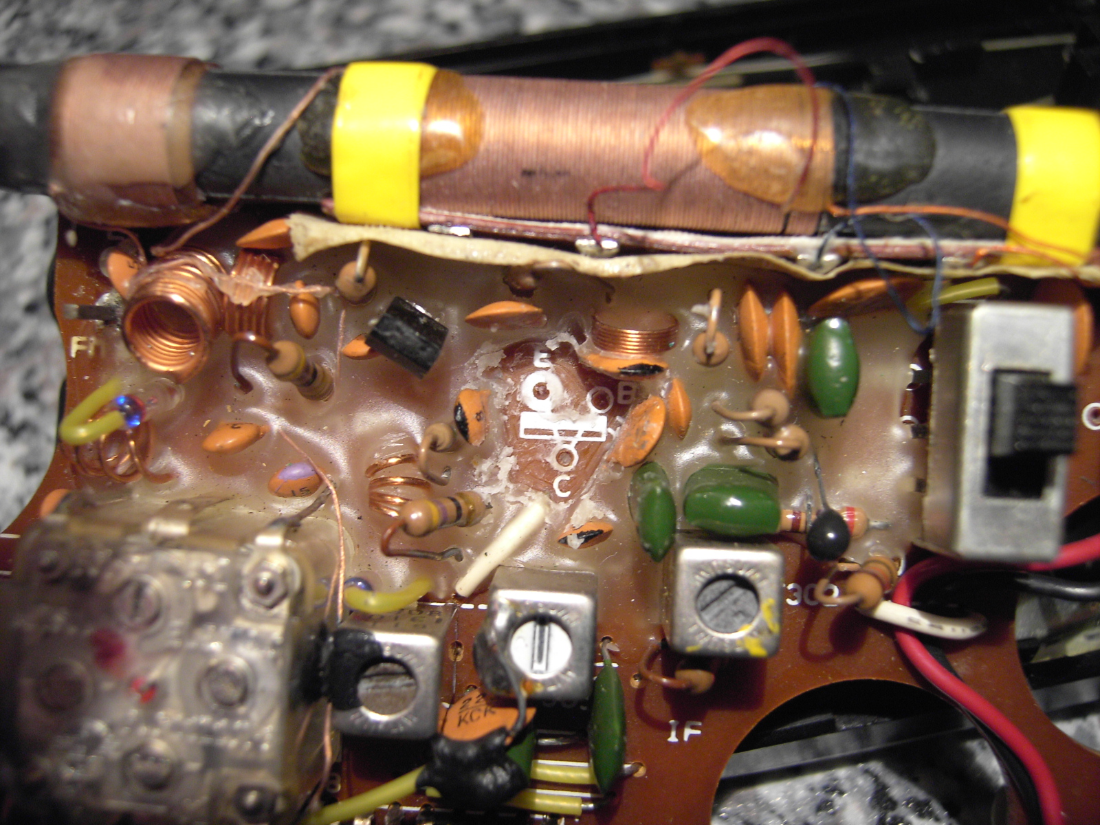 Plastverkappte Halbleiter. Bei einigen Bauformen verrottet der Kristall. Hier ist auch nur Austausch sinnvoll.