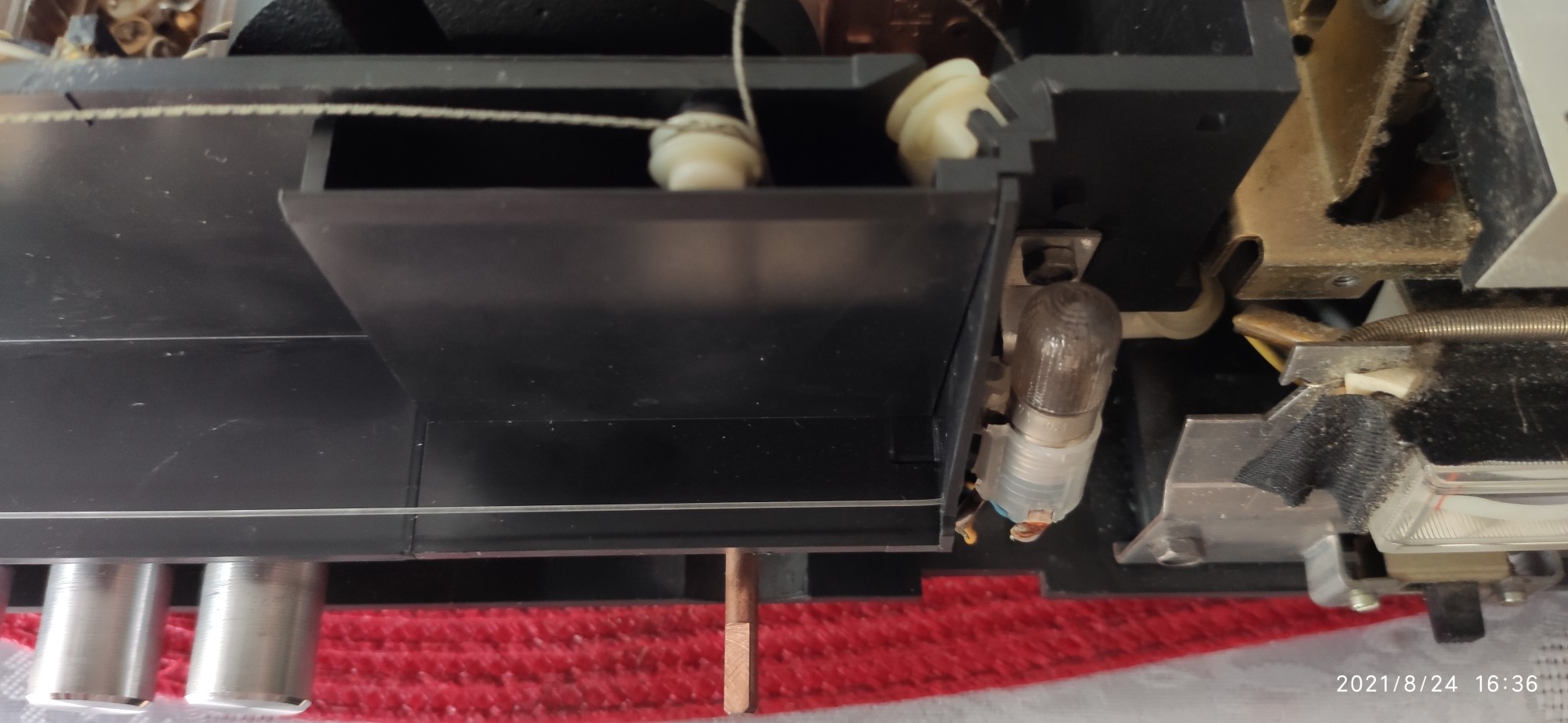 Da der Seilzug bei diesem Gerät nicht ganz trivial ist, habe ich mir noch ein Service Manual dazu besorgt, in dem der Seillauf beschrieben ist. Nun habe ich festgestellt, daß man an das vordere Seilrad, das durch die Senderwahl-Welle über das Skalenseil bewegt wird, gar nicht herankommt. Die Darstellung des Seillaufes im Service Manual zeigt leider auch nicht, wie und wo für dieses Seil die Seilenden befestigt werden. Weiß noch jemand, was man ggf. noch zerlegen müßte, um einen neuen Seilzug auflegen zzu können?