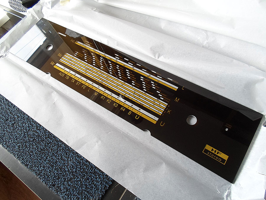 Eine schwierige Thema - Skalas bei alten Röhrenradios. Ein Grafik von Skala heute erstellen ist keine grosse Probleme - Adobe Illustrator zum Beispiel. Die größte Problem ist so eine Skala in Siebdruck ausdrucken lasen. Und das kann man vernünftig nur mit Siebdruck machen. Alle andere Methoden wie z.B. Digitaldruck bringen nicht viel, weil die Schichten von die Farben sind zu dünn und nicht dicht genüg, des wegen bei Beleuchtung wird die Skala halbtransparent. Ich habe das alles schon ausprobiert.