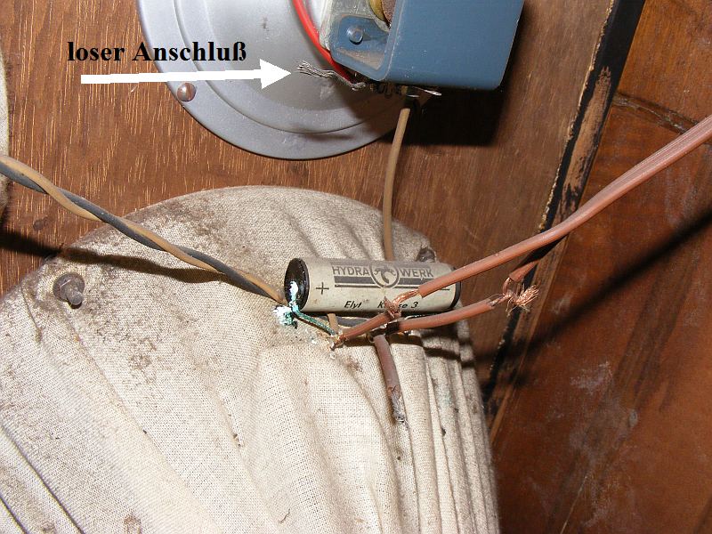 Auf dem Tieftöner ist ein Kondensator angebracht. Dieser ist zwischen dem linken und dem rechten Anschluß angeschlossen.