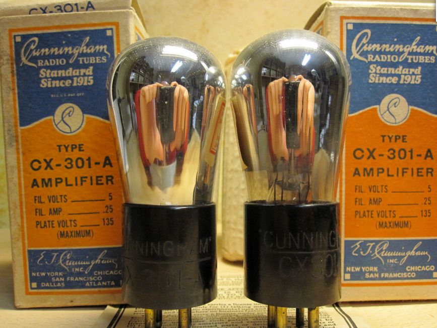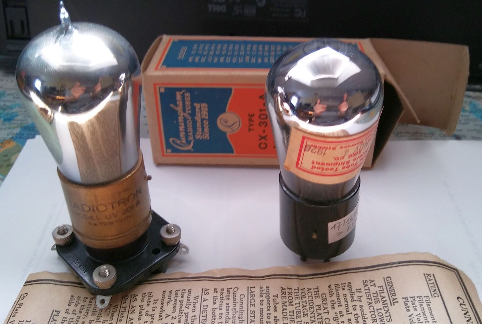 Im nächsten Teil zeige ich nächsten Monat weitere Bilder des restaurierten Freed-Eisemann Nr.5 # 310SS mit "neuen" Röhren "frisch" aus der Schachtel. Freedys (Michaels) Bilder findet man unter dem ersten Link oben. Auch ich habe überwiegend die CX301A von Cunningham eingesetzt. In meinen Augen ist das die baugleiche Type zu Radiotron UV201A bzw. UX201A. Man darf aber nicht übersehen, dass der Wechsel zur X-Type nicht nur mit einem geänderten wenn auch kompatiblen Röhrensockel verbunden war, sondern durch geänderte Gitterstruktur auch eine höhere Steilheit und geringere Fertigungstoleranzen erzielt wurden. Letzteres war gerade durch die Einführung des Neutrodyne- Prinzips notwendig geworden. Wahrscheinlich waren die baugleichen Cunningham Stückzahlen am Ende höher und wurden auch länger produziert. Die Amis sprechen normalerweise auch nur von der "01A" Röhre. Einer meiner Cunningham Röhren trug einen Aufkleber mit dem Datum 04.Nov.1926.