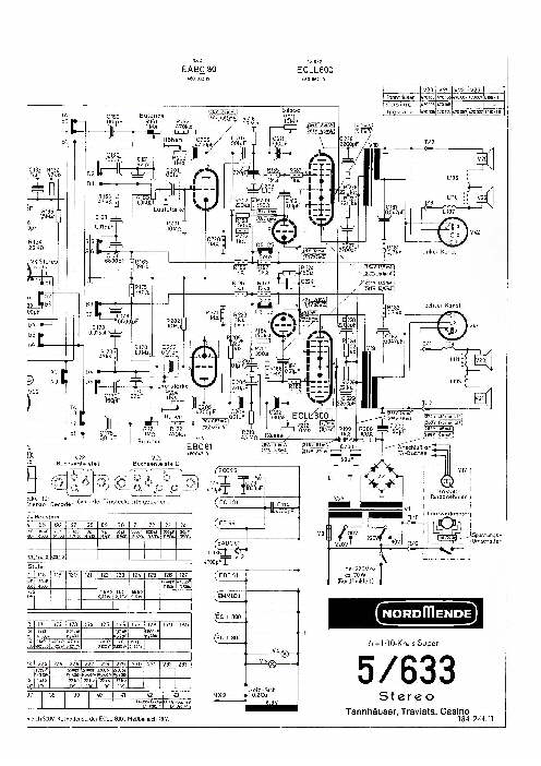 ich habe eine Nordmende Casino-Musiktruhe mit Chassis 5/633 vor dem Sperrmüll bewahrt. HF und ZF funktionieren inkl. Stereodekoder tadellos, nur kein Signal aus dem an den Din-Buchsen angeschlossenen Testlautsprecher. Wie sollte ich weiter vorgehen, das Gerät ist sehr hoch integriert und mit 2 ECLL800 bestückt. Hat vielleicht jemand einen Schaltplanausschnitt der Endstufen? Den Schaltplan vom Chassis 5/632 habe ich, aber das ist eine Ausgabe mit 2xEL84 in der Endstufe.