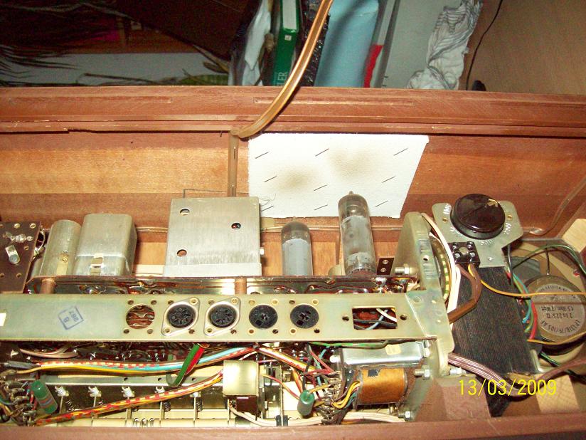 Schaltet man es ein, brummt der Netztrafo übermäßig laut, das Radio bleibt aus / kalt. Ich tippe auf einen Kurzschluss der Anodenspannung und verdächtige den Trockengleichrichter und den zugehörigen Becherelko.
